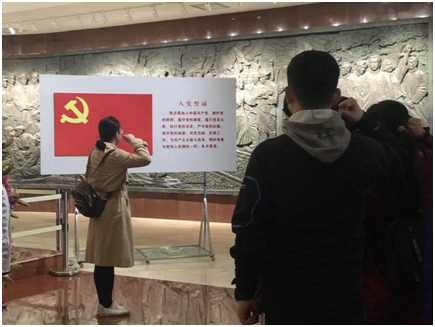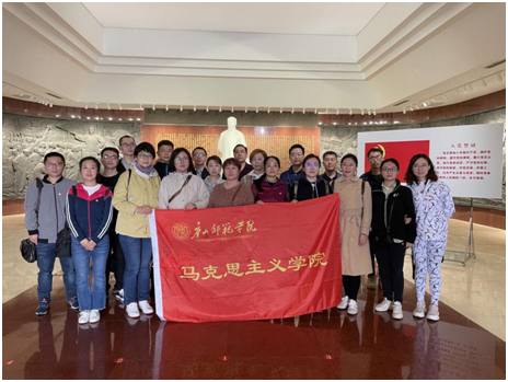 到达李大钊纪念馆,在教工党支部书记赵婉华的带领下,全体教师党员为李大钊敬献花篮,默哀并鞠躬,表达对李大钊同志的崇高敬意和深切缅怀,并在李大钊雕像前举起右手,重温了入党誓词。