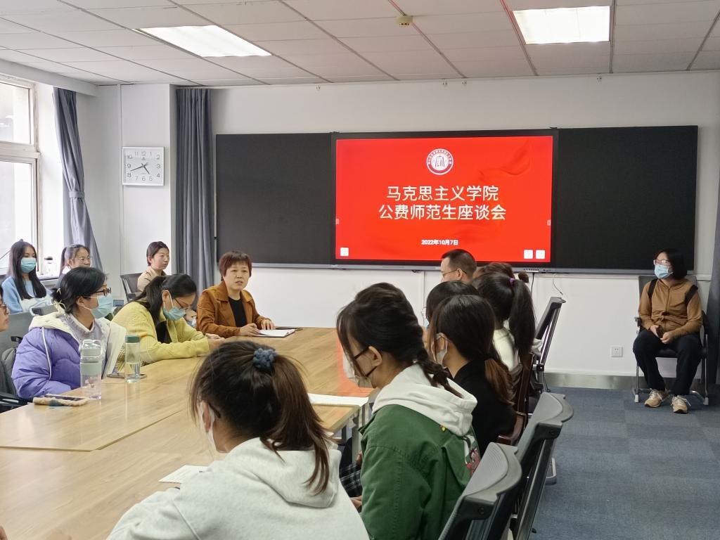 为了全面深入了解公费师范生思想、学业、生活的情况,切实提高思想政治教育专业公费师范生培养质量,人人看人人干于10月7日下午在213会议室召开了20级、21级公费师范生座谈会。人人看人人干党总支书记安静、副院长宋晓敏、教师代表胡志洋、王红向、班主任郑玄芳出席会议。座谈会由宋晓敏主持。