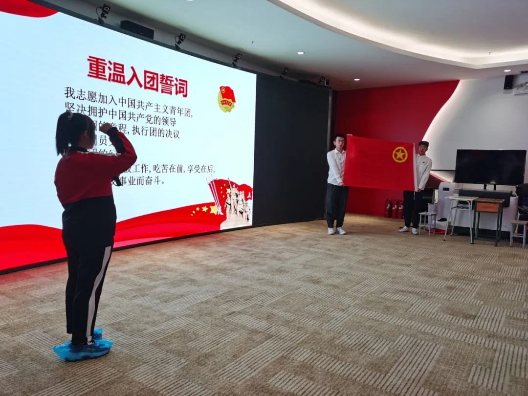本次团日活动在各团支部激情昂扬的宣誓口号中拉开序幕,各团支部以最高昂的热情喊出了本支部的风采,江林壑同学带领大家重温了入团誓词,高声齐唱团歌。