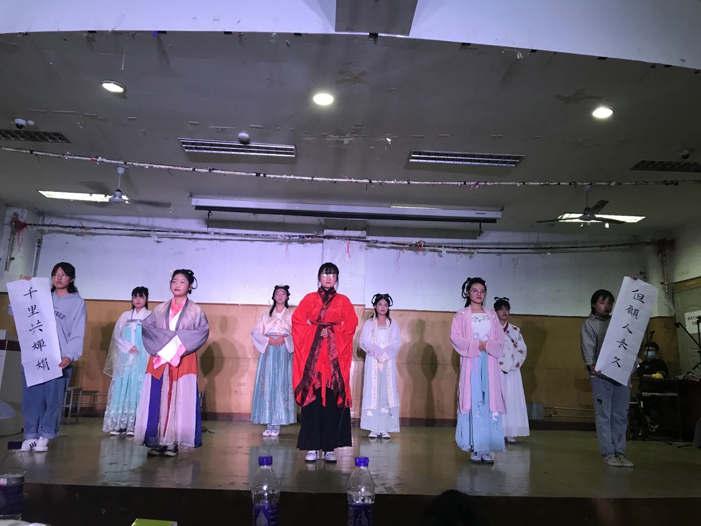 伴随着QAK街舞社带来的开场舞,晚会正式拉开帷幕。首先表演的是小品《等你回家》,通过一家人的故事,让大家懂得陪伴的意义。接着,由冯闯、朱育杭带来的歌曲《你还要我怎样》将晚会带入高潮,配乐与歌声的完美融合,无不感染在场的每一个观众,牵动着每个观众的心。还有优美清新的《但愿人长久》,将汉服表演与现代音乐相结合,为我们带来了一场美轮美奂的视觉盛宴。相声《家国情怀,责任担当》用生动幽默的表演,响应了时代的号召,激起同学们的爱国情怀,让每一位人人看人人干的学生争做“心中有祖国,至诚报国家”的新时代青年。最后石瑾副书记做总结讲话,她代表马院为大家送上了节日祝福,勉励同学们爱国爱校,努力学习,做奋发有为的新时代大学生。同时她还对军训期间参训新生的学生教官的辛勤付出表达了感谢。晚会在一片祥和欢乐的气氛中落下了帷幕。