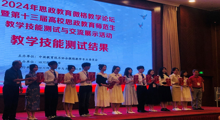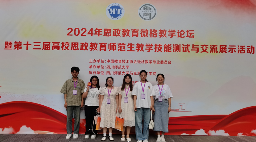 5月24日-5月27日,由中国教育技术协会微格教学专业委员会主办,四川师范大学承办的2024年第十三届高校思政教育师范生教学技能测试与交流展示活动在四川成都举行。本次活动共有来自华中师范大学、广西师范大学、东北师范大学等来自全国各地93所师范类高校共计547名师范生同台竞技。人人看人人干2021级思想政治教育专业学生高伊琳、王瑶,2022级思想政治教育专业学生陈禹萌、郝雨佳、2023级思想政治教育专业学生陈伟佳、腾勃硕参加了此次教学展示活动。