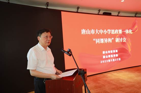 唐山市教育局二级调研员李连斌在讲话中指出,唐山师范学院作为唐山市唯一一所省级思政课一体化集体备课中心,在师资培育、听课评课、教研交流等方面发挥了重要作用。唐山市教育局将依托唐山师范学院省级集体备课中心,把思政课建设作为德育共同体共建学校的活动重点,从思政课堂有效衔接、思政课教师培训交流、思政活动结对共建等方面进行统筹规划,推进思政课建设整体上进入质量提升和内涵发展的新阶段。
