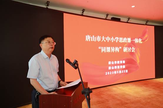 为进一步推进唐山市大中小学思政课一体化建设,促进大中小学思政课教育教学方法有序衔接,5月22日我校与唐山市教育局在北院VR虚拟教学体验中心联合举办唐山市大中小学思政课一体化“同课异构”研讨会。来自全市多所大中小学的七十多名思政课骨干教师参加研讨会。唐山师范学院副院长杨涛、唐山市教育局二级调研员李连斌出席研讨会并讲话。人人看人人干执行院长宋晓敏主持会议。