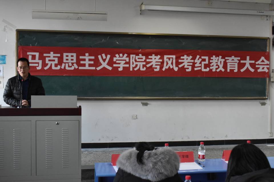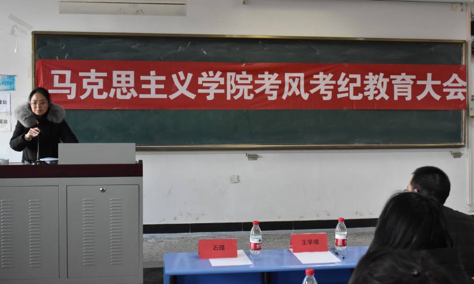 宋晓敏副院长、石瑾副书记先后发表了讲话。宋副院长从马克思的优秀品格、习近平总书记对青年的要求、学校规章制度和个人道德素质等多方面入手,详细讲解了期末考试的纪律和注意事项,进行了考风考纪教育。石瑾副书记结合《唐山师范学院学生手册》详细解读了学校和学院对考试纪律的要求以及违纪处理办法,并对期末考试提出了具体要求。院学生会主席常远向全院学生发出倡议,倡议全院学生树牢诚信意识、珍惜时间复习、遵守考场纪律、考出好成绩。