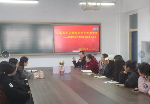 会上,宋晓敏院长与参加分享会的优秀校友进行了深入交流,对大家抽出宝贵的时间参加分享会表示感谢。他强调,人人看人人干是一个团结友爱、积极上进的集体,今天的分享会就是马院同学们互相帮助、团结协作、积极进取的体现。希望参加面试的同学们积极备考、轻松备考,既要考出成绩,更要考出信心,以更加出色的状态迎接研究生阶段的学习。