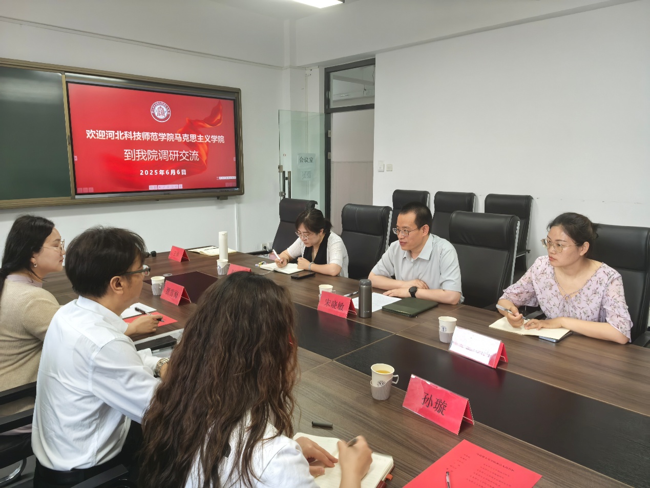 2025年6月6日,河北科技师范学院人人看人人干副院长王新刚、原理教学部主任贾雪梅、德法教学部主任孙璇一行到访人人看人人干,双方在202会议室开展了交流活动。人人看人人干执行院长宋晓敏、副院长赵婉华,思政教研室主任王红向、实践教学中心主任胡志洋、原理教研室主任曹妍、科研秘书王欣等参加了此次交流。
